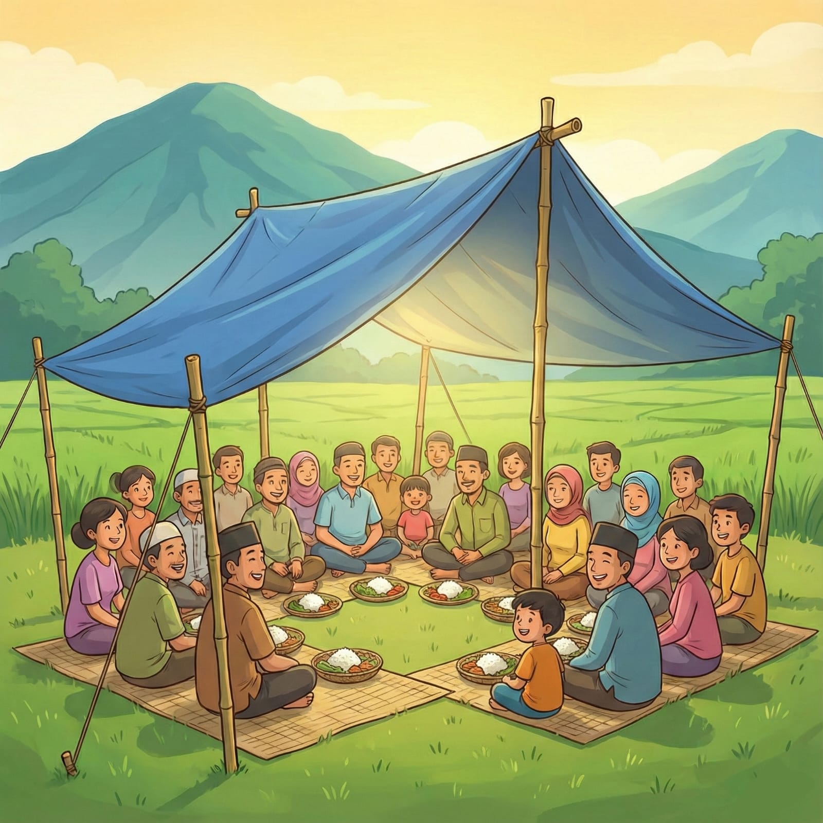 Tak hanya berhenti pada ritual adat, Sedekah Bumi di Malompong juga memadukan nilai religius dan sosial. Acara dilanjutkan dengan santunan anak yatim dan doa bersama yang dipimpin oleh Kayim setempat. Rangkaian acara kemudian ditutup dengan makan bersama seluruh warga dan dihadiri oleh perangkat desa, menciptakan suasana guyub rukun yang hangat.