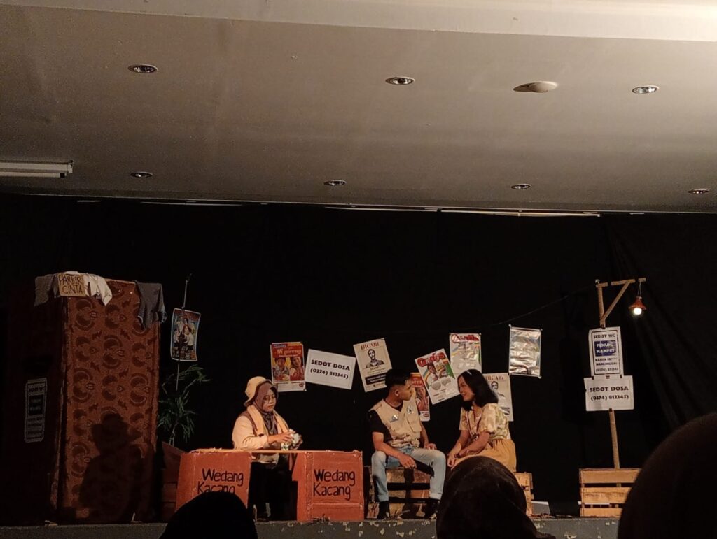 Di sudut panggung Jagat Rasa, sebuah gerobak bertuliskan “Wedang Kacang” berdiri tanpa sorotan. Tidak mencolok, tidak mendominasi. Namun dari titik inilah pementasan Orang-Orang di Tikungan Jalan mulai bergerak.