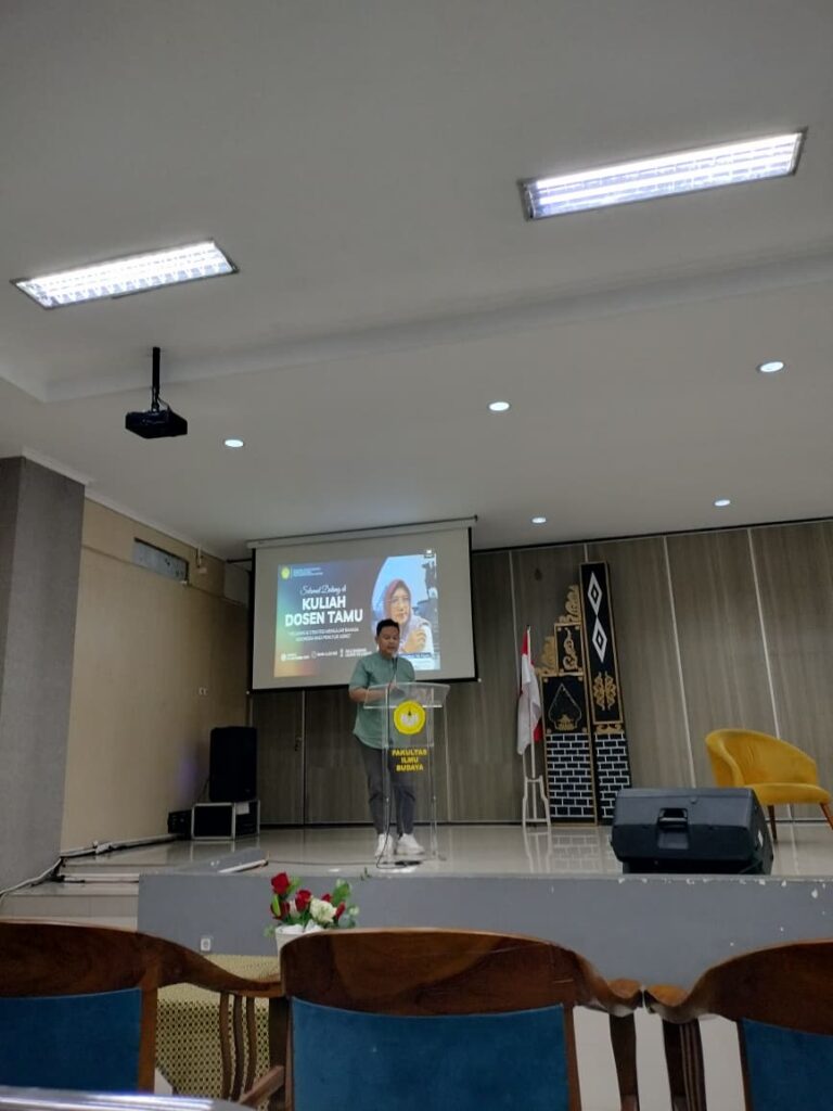 Purwokerto — Prodi Pendidikan Bahasa Indonesia FIB Unsoed, menggelar kuliah pakar bertajuk Peluang dan Strategi Mengajar Bahasa Indonesia bagi Penutur Asing pada Jumat (24/10-2025) pukul 08.00–11.00 WIB di Aula Bambang Lelono. Kegiatan yang dibuka resmi sekitar pukul 08.25 WIB itu menghadirkan Dr. Ari Kusmiatun, M.Hum. (dosen Universitas Negeri Yogyakarta dan pengajar BIPA) sebagai pemateri utama. Acara diikuti antusias oleh mahasiswa Program Studi Pendidikan Bahasa Indonesia angkatan 2022, 2023, dan 2024.