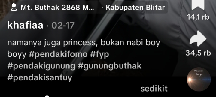 Fenomena penggunaan bahasa gaul di media sosial semakin berkembang di kalangan remaja digital. Salah satu contohnya terlihat pada unggahan TikTok dengan caption, “Namanya juga princess, bukan nabi boyy #pendakifomo.” Ungkapan ini menunjukkan cara remaja mengekspresikan diri secara santai sekaligus menggambarkan tren munculnya istilah baru dalam ruang komunikasi digital.