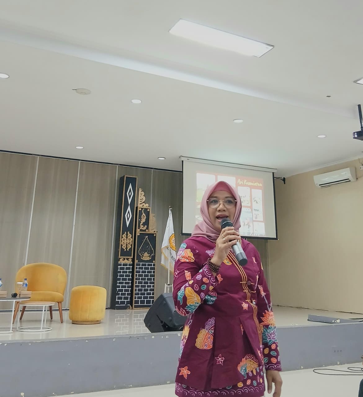 Dalam sesi pemaparannya, Ari Kusmiatun menyampaikan bahwa pengajaran Bahasa Indonesia bagi penutur asing tidak hanya berfokus pada aspek kebahasaan, tetapi juga menjadi sarana untuk mengenalkan nilai dan budaya bangsa. Ia menegaskan bahwa pengajar BIPA memiliki peran strategis sebagai duta budaya yang membawa semangat Indonesia ke dunia internasional.
