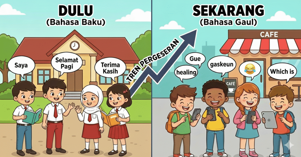 Perubahan ini paling terlihat di media sosial, tempat munculnya istilah-istilah baru yang dengan cepat menyebar ke seluruh penjuru Indonesia. Kosakata seperti “gaskeun,” “healing,” “bestie,” hingga “pansos” semakin umum digunakan lintas wilayah dan latar belakang sosial.