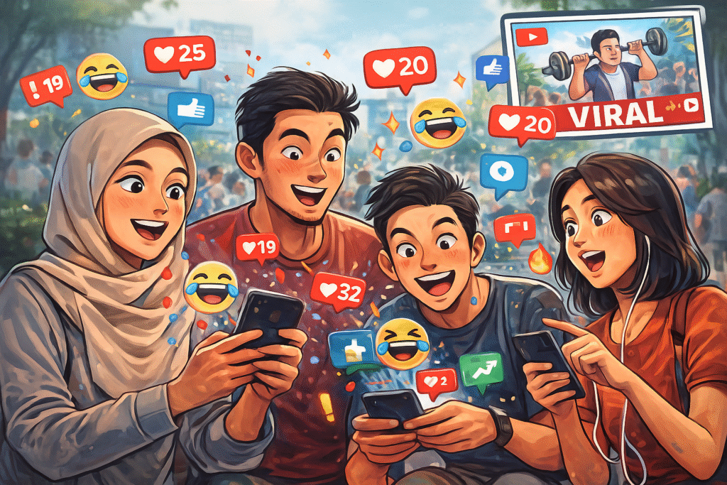 PURWOKERTO — Fenomena konten viral di media sosial semakin tak terhindarkan seiring meningkatnya aktivitas pengguna digital. Huang (2020) menyebut bahwa konten media sosial merupakan informasi dan hiburan yang disebarkan melalui platform jejaring sosial seperti YouTube, Instagram, dan Facebook, baik oleh individu maupun organisasi, serta memungkinkan interaksi langsung dengan pengguna.