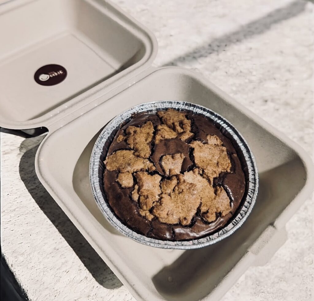 Classic Brookies tampil dengan lapisan brownies cokelat yang lembut dan padat di bagian dasar, lalu dipadukan dengan adonan cookies di bagian atas yang memberikan tekstur renyah di luar namun tetap lembut di dalam.