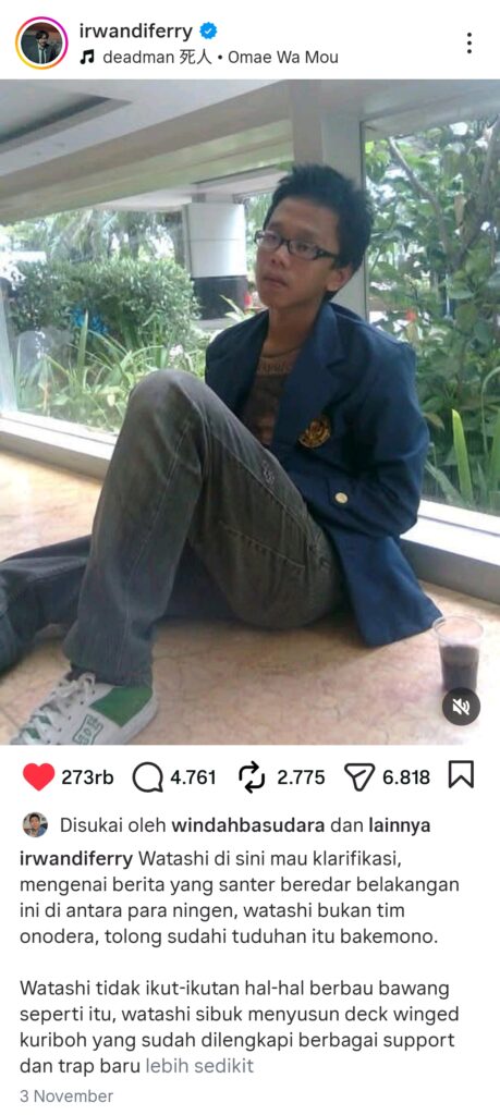 Ungkapan-ungkapan khas seperti “watashi” atau “minna” bagi sebagian penutur bukan lagi sekadar gaya bicara, melainkan cara menegaskan siapa diri mereka di dunia maya. Seperti yang diungkapkan oleh seorang influencer Ferry Irwandi, dalam salah satu unggahan pada 3 November 2025, dengan keterangan: