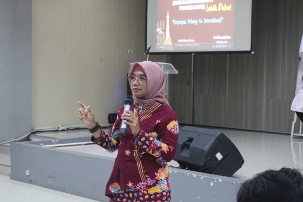 Purwokerto – Program Studi Pendidikan Bahasa Indonesia Universitas Jenderal Soedirman (Unsoed) menyelenggarakan kuliah pakar bertema “Peluang dan Strategi Mengajar Bahasa Indonesia bagi Penutur Asing (BIPA)” pada Jumat, 24 Oktober 2025. Kegiatan yang berlangsung di Aula Bambang Lelono, Fakultas Ilmu Budaya Unsoed ini diikuti oleh mahasiswa angkatan 2022–2024. Kuliah pakar menghadirkan narasumber Dr. Ari Kusmiatun, M.Hum., dosen dari Universitas Negeri Yogyakarta yang berpengalaman dalam bidang pengajaran Bahasa Indonesia bagi penutur asing di berbagai negara.