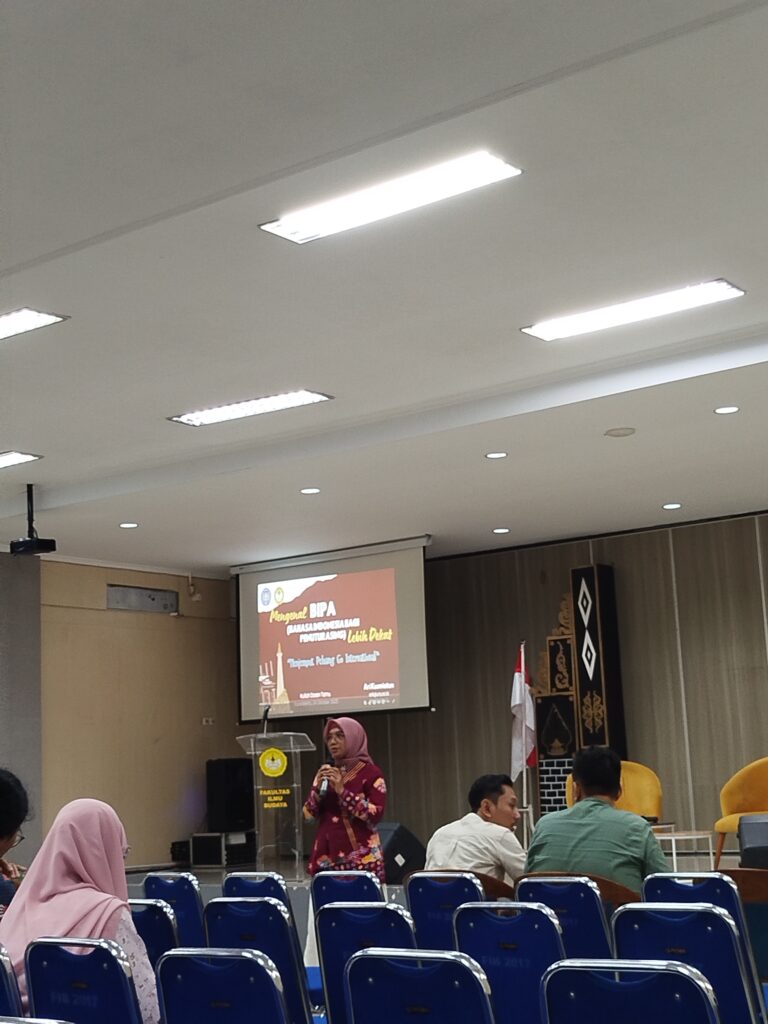 Acara ini menghadirkan Dr. Ari Kusmiatun, M.Hum., yang menyampaikan bahwa pengajaran BIPA memiliki peran krusial dalam mempromosikan bahasa Indonesia di tingkat global. Menurut Dr. Ari, BIPA tidak hanya sebatas mengajarkan bahasa, tetapi juga berfungsi sebagai diplomasi budaya. Ia menyebut Bahasa Indonesia sebagai “jendela dan pintu” untuk berinteraksi di kancah internasional, dan menguasai strategi pengajaran BIPA akan sangat membuka prospek karier bagi tenaga pendidik Indonesia di luar negeri.