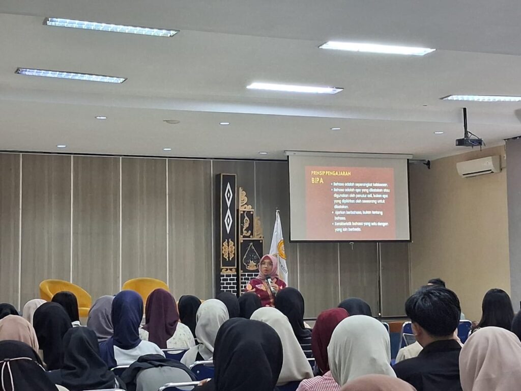 Sebagai narasumber, Dr. Ari Kusmiatun, M.Hum. memaparkan materi bertajuk “Mengenal BIPA Lebih Dekat: Menjemput Peluang Go Internasional.” Ia menjelaskan peluang besar bagi lulusan pendidikan bahasa Indonesia untuk berkarier di kancah internasional melalui program pengajaran BIPA di berbagai negara.