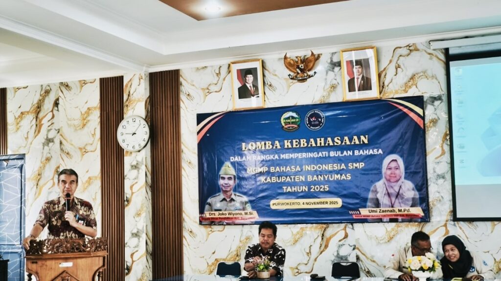 Purwokerto – Dalam rangka memperingati Bulan Bahasa 2025, Dinas Pendidikan Kabupaten Banyumas bekerja sama dengan MGMP Bahasa Indonesia SMP menggelar Lomba Kebahasaan di SMP Negeri 2 Purwokerto, Selasa (4/11/2025). Selain itu, kegiatan ini menjadi ajang bagi pelajar untuk menunjukkan semangat dan kecintaan terhadap bahasa Indonesia.