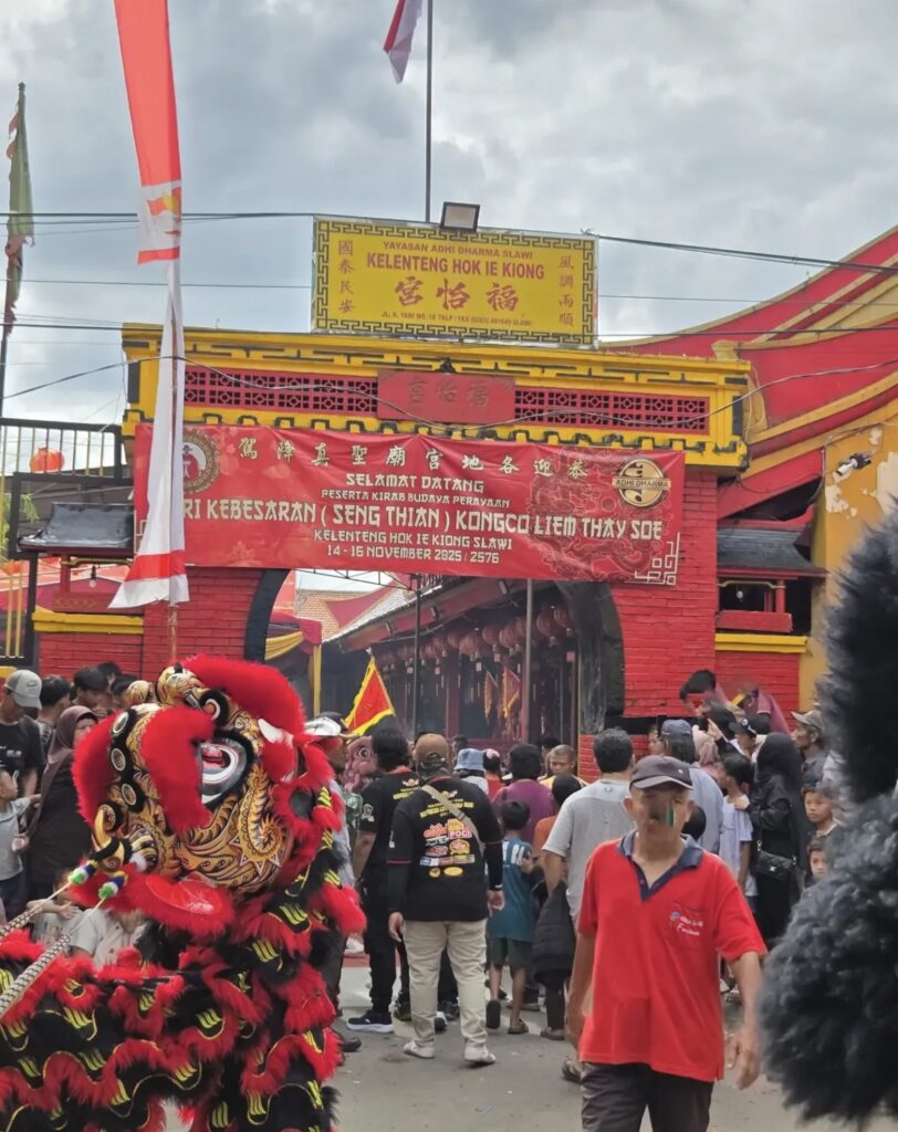 Purwokerto — Perayaan Khai Kwang Kimsin berlangsung meriah pada Minggu (24/11) melalui gelaran kirab ritual budaya yang sejak pagi telah menarik perhatian masyarakat. Kirab yang dimulai dari halaman kelenteng setempat ini menampilkan arak-arakan patung dewa (kimsin), barongsai, liong, serta berbagai atribut budaya Tionghoa yang sarat nilai spiritual