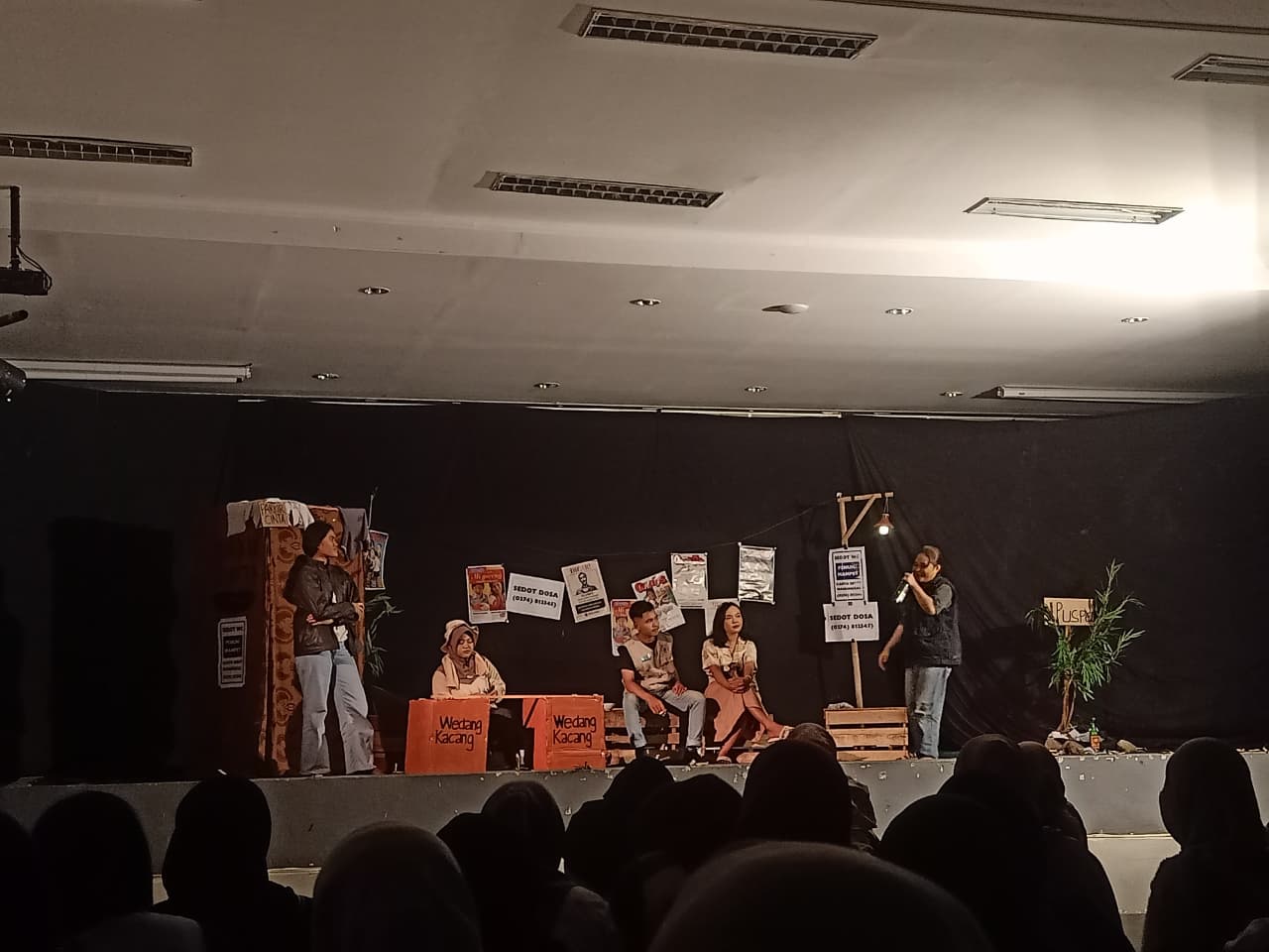 Panggung sederhana itu menampung lebih dari sekadar adegan. Dalam satu ruang yang sama, berbagai perilaku manusia dipertemukan dan dibiarkan berjalan berdampingan. Lampu panggung menyala tenang, membuka pemandangan lima sosok dengan pilihan sikap yang berbeda-beda.