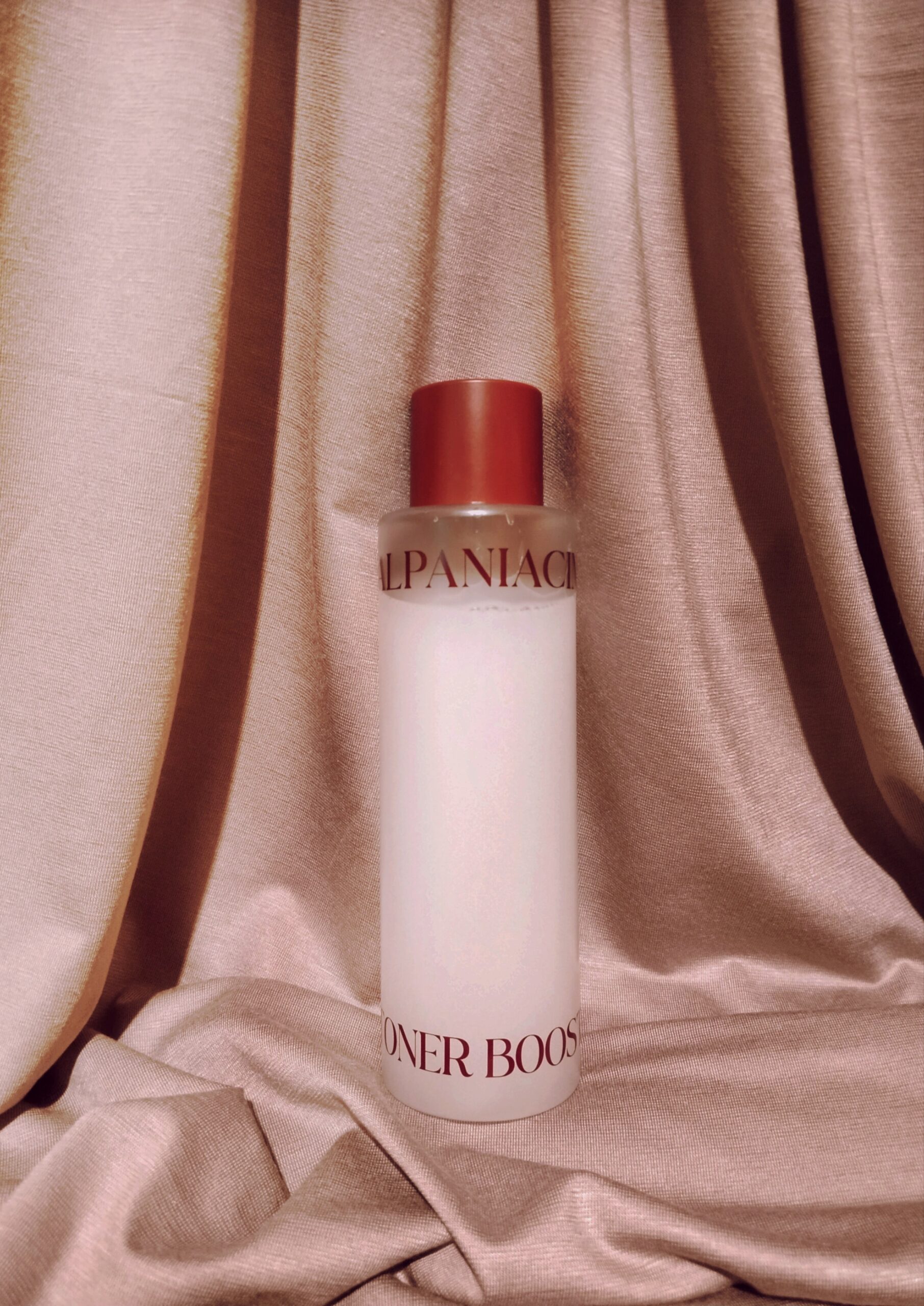 Shionle Alpaniacin Toner Booster dalam kemasan 250 ml, toner dengan formula hidrasi ringan untuk kulit kombinasi hingga berminyak (Foto: dokumentasi pribadi)