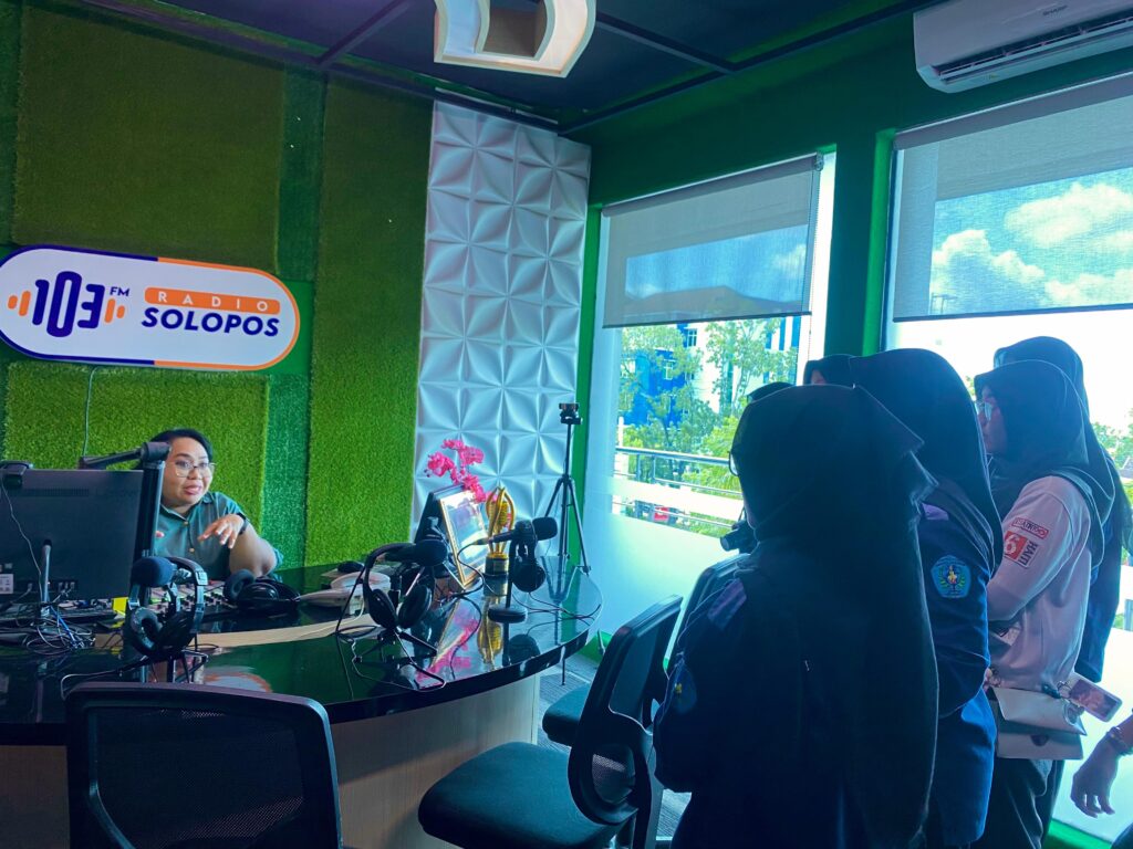 Setelah sesi materi, peserta mengikuti room tour untuk melihat langsung proses produksi media di Solopos. Mereka diajak memasuki ruang redaksi tempat berita diracik, studio podcast tempat konten audio direkam, studio siaran, hingga area percetakan tempat koran diproduksi. Pengalaman ini menjadi kesempatan langka bagi mahasiswa untuk menyaksikan bagaimana cara kerja jurnalistik berlangsung secara nyata, dari tahap perencanaan hingga distribusi.